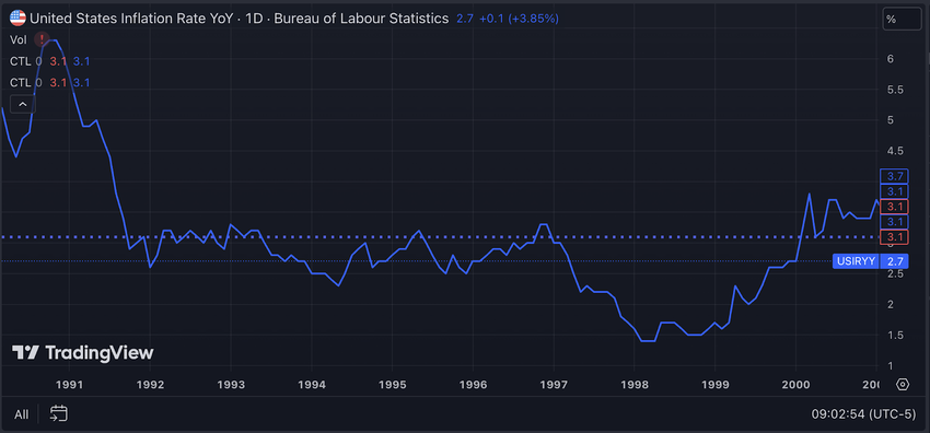 US inflation rate YoY in the 1990s. Source: Tradingview