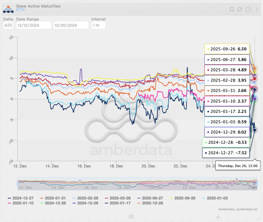 The skew changes of ETH options with different DTEs. Source: Amberdata Derivatives