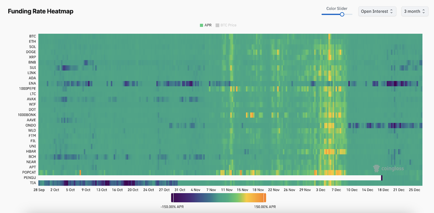Funding rate heatmap. When the “vegan altcoin season” comes, funding rates and prices rise sharply simultaneously. Source: Coinglass
