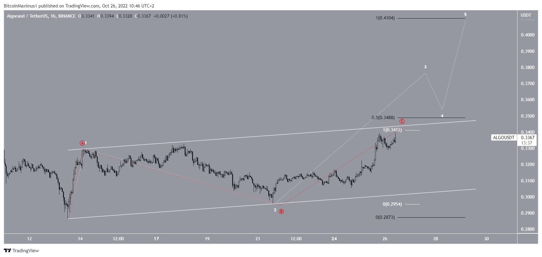 ALGO price has been trading inside an ascending parallel channel since falling to a yearly low of $0.275 on June 16. Such channels usually contain corrective movements. This would mean that an eventual breakdown from the channel is expected.