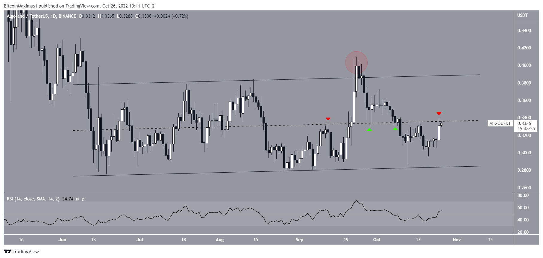 SponsoredOn Sept. 23, Algorand price seemed to break out from the channel. However, it failed to sustain its upward movement (red circle) and fell shortly afterward.