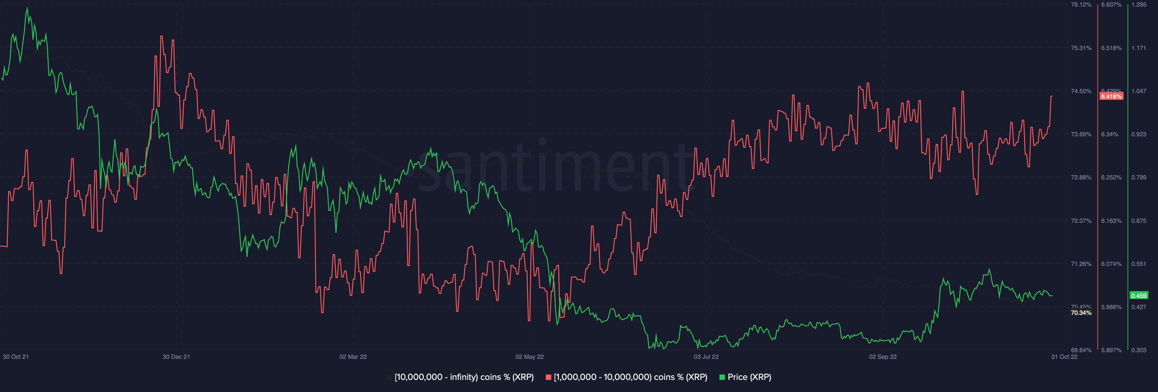 Still, Ripple whales seem to be on the move. Data from Whale Alert highlighted that on Oct. 29, 40,614,705 XRP worth $19.29 million was transferred from Bitstamp to an unknown wallet.