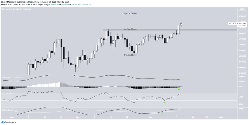 Bitcoin had been struggling to move above the $61,500 resistance area since reaching the level for the first time on March 13. Yesterday, it finally managed to break out and has reached a new high of $64,854 on April 14.
