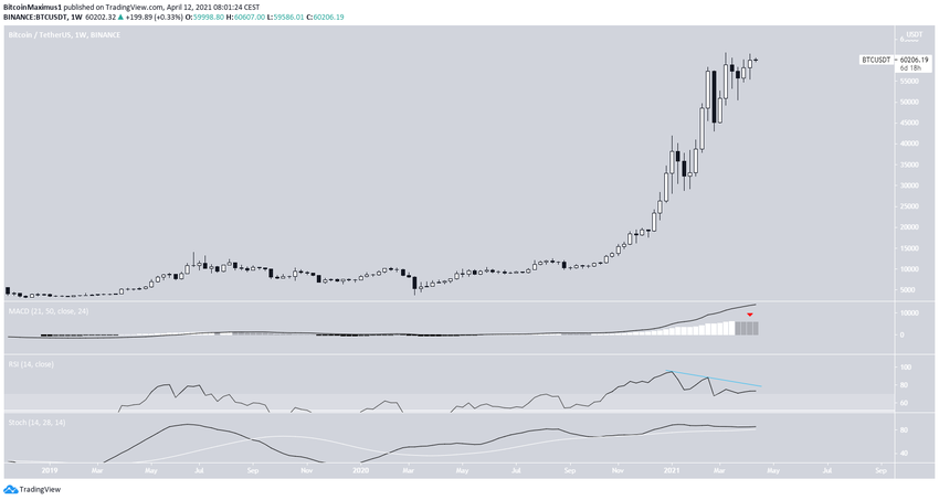 Bitcoin increased slightly last week, going from a low of $55,473 to a high of $61,500. It managed to close at $60,002, which was simultaneously the first close above $60,000 and the highest-ever weekly close.