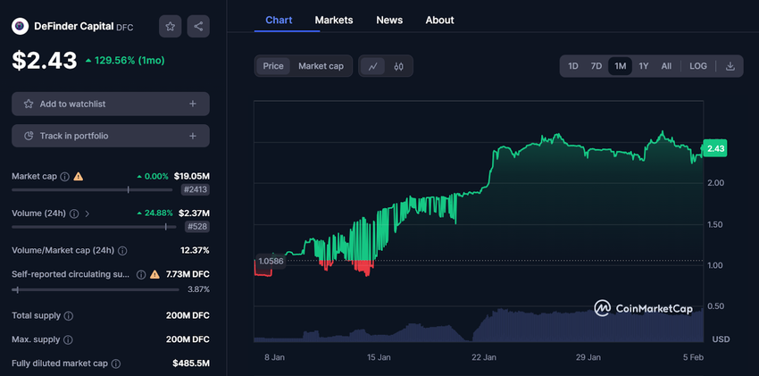 Therefore, based on the existing data, it seems most likely that DeFinder Capital will be among the projects with a $100M market cap very soon.