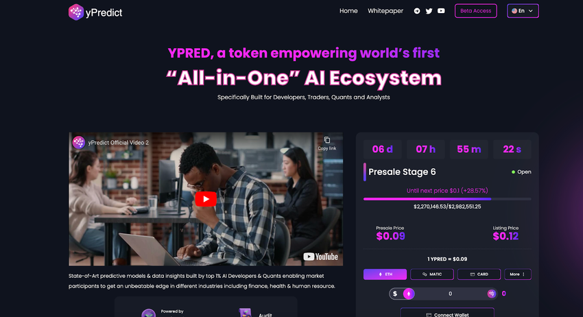 yPredict relies on AI-driven tools, including Natural Language Processing, to deliver data-driven insights on crypto market trends. The platform’s native token, $YPRED, enables holders to gain passive income through various revenue streams, making it an attractive asset.