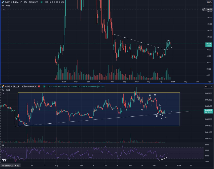 Sponsored Sponsored“Starting to look like DeFi might make a resurgence soon. $AAVE looks amazing to me, especially its btc pair, nice 12h bull div, high timeframe accumulation and 5 waves within the C. This is such an easy long imo its like taking candy from a baby.”