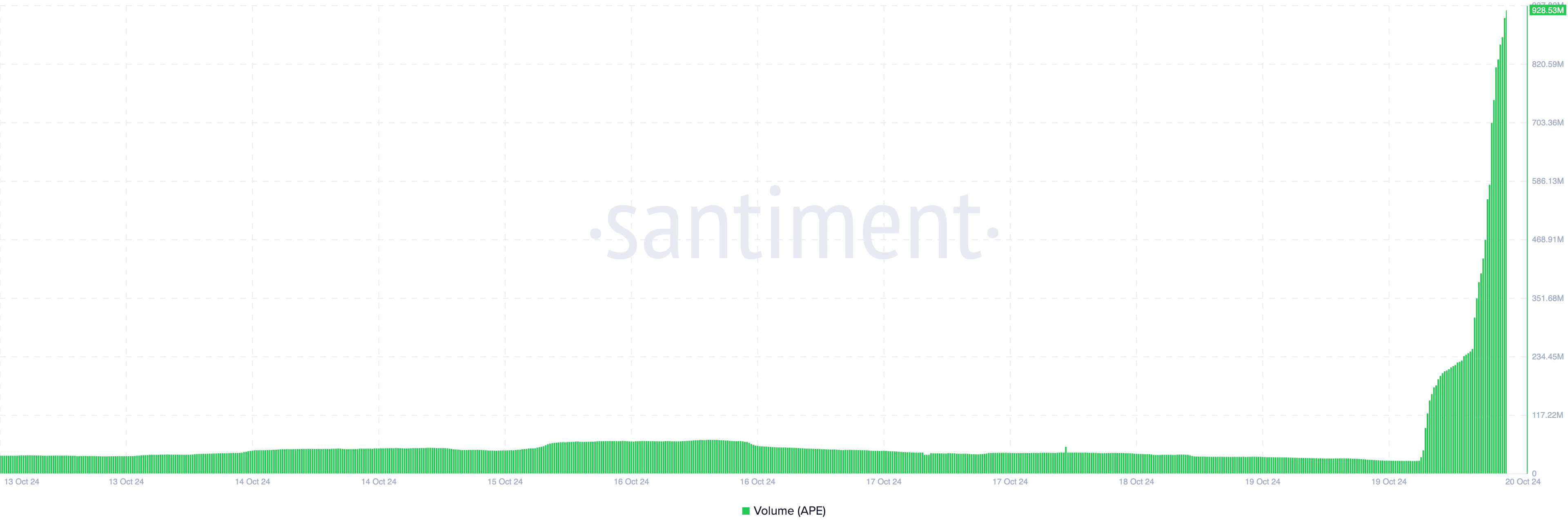 This trend was further supported by ApeCoin’s total on-chain volume. According to Santiment data, the volume surged nearly 3000% in the past 24 hours and is approaching the $1 billion mark. If the volume continues to climb alongside the price, the altcoin’s value could surpass $1.25 in the coming days.