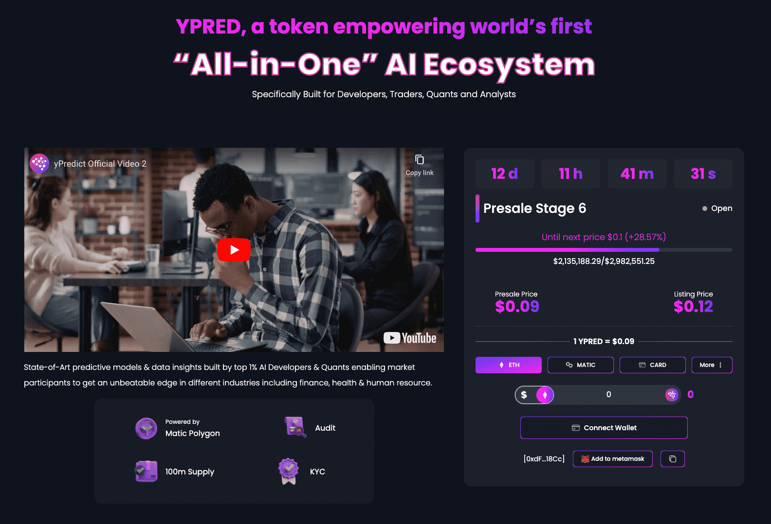 Early investors can purchase $YPRED tokens for just $0.09 – 33% lower than the planned listing price of $0.12.