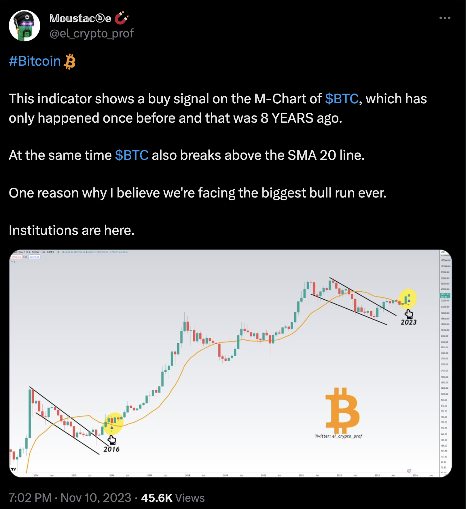 Market analysts looking at historical data suggest that an ETF approval could cause the asset’s price to rise further. One pundit on social media platform X (formerly Twitter) suggests this price rise could be the biggest Bitcoin bull market.
