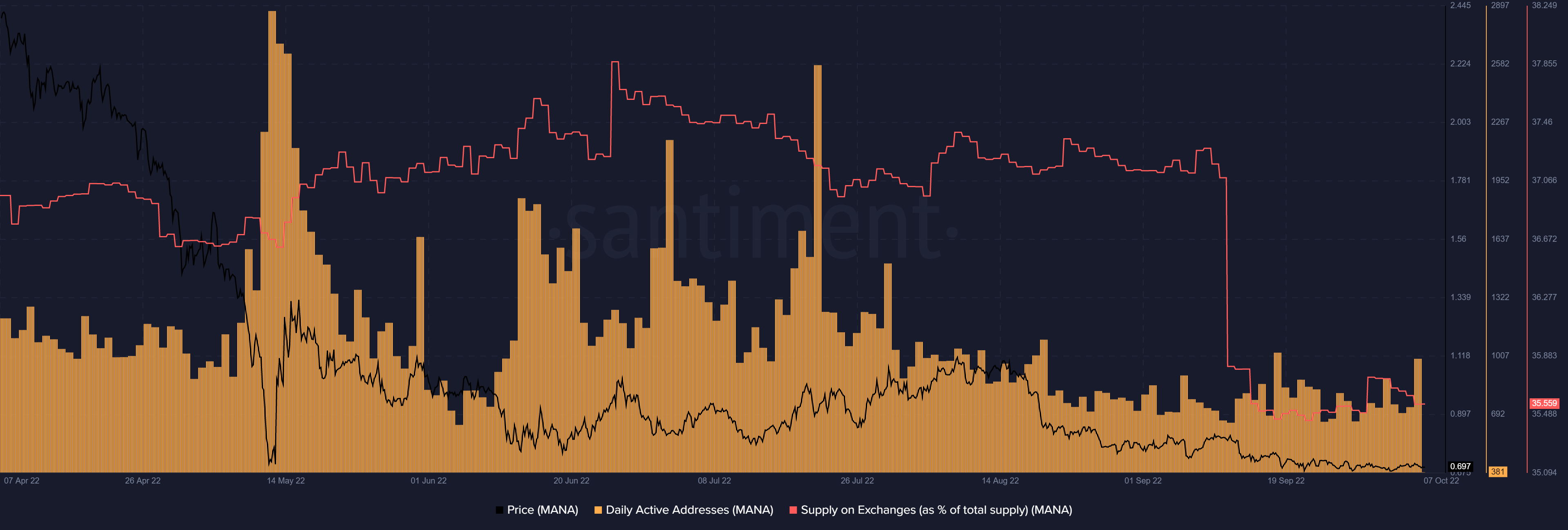 A look at MANA supply on exchanges at low levels presented how participants were confident in the future.