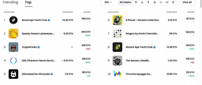 As of writing, two collections from Reddit have placed themselves in OpenSea’s top 10 list. Spooky Season by poieeeyee has beaten the likes of CryptoPunks and the Ethereum Name Service collection based on volume. The volume of Spooky Season is almost twice the volume of CryptoPunks. The highest asking price of Spooky Season is 750 ETH which is equivalent to nearly $1 million for Midas Touch #83
