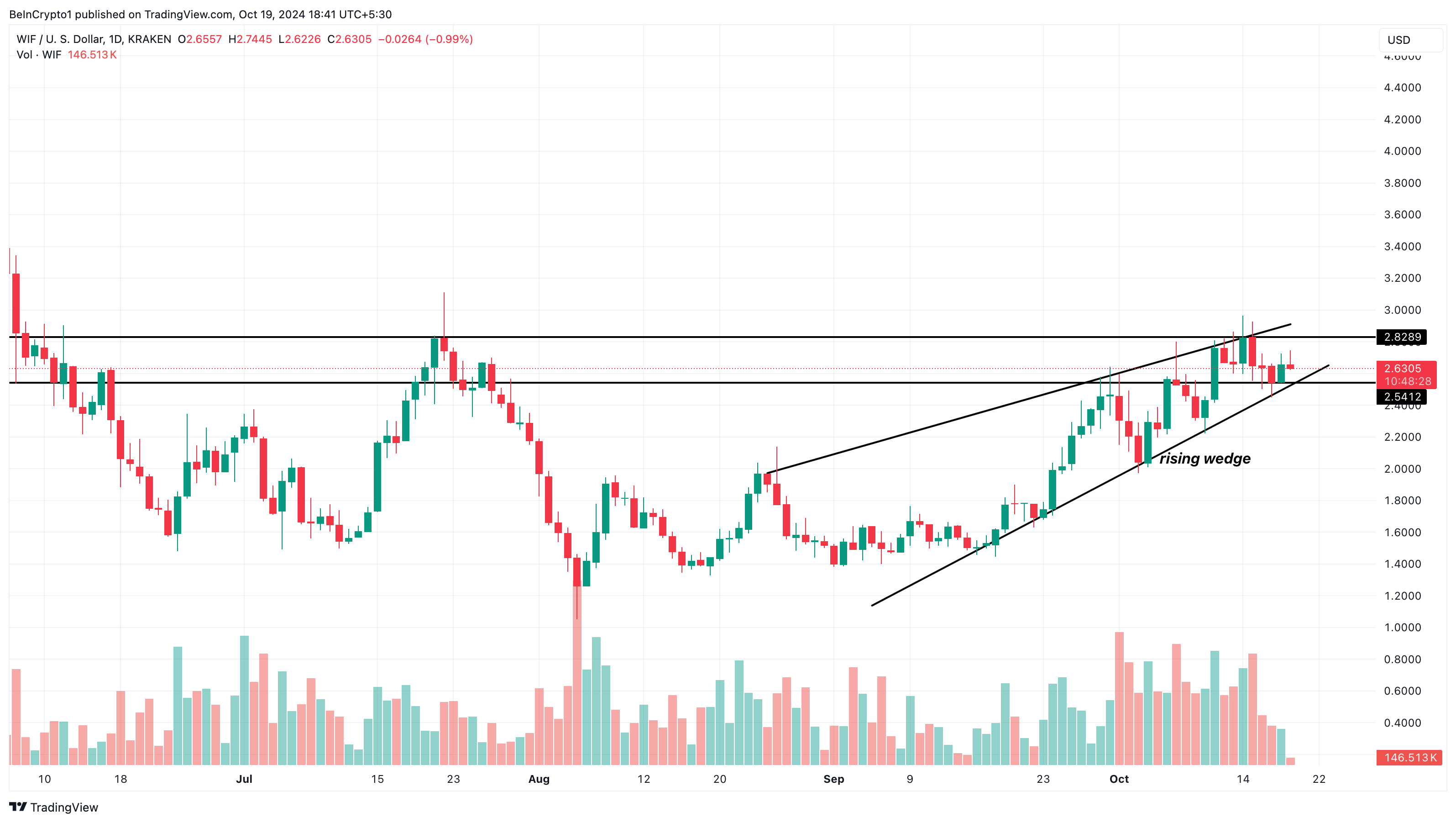On October 14, WIF’s price almost hit $3. However, the resistance at $2.82 ensured that the meme coin could not reach the threshold again for the first time since July.