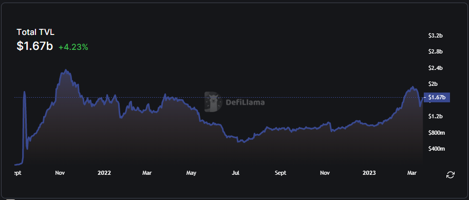 With the transition to a DAO, Arbitrum looks to build on its $1.67 billion in total value-locked Ethereum market share. The smart contract language of its Arbitrum Virtual Machine is compatible with Ethereum, making it easy for developers to migrate.