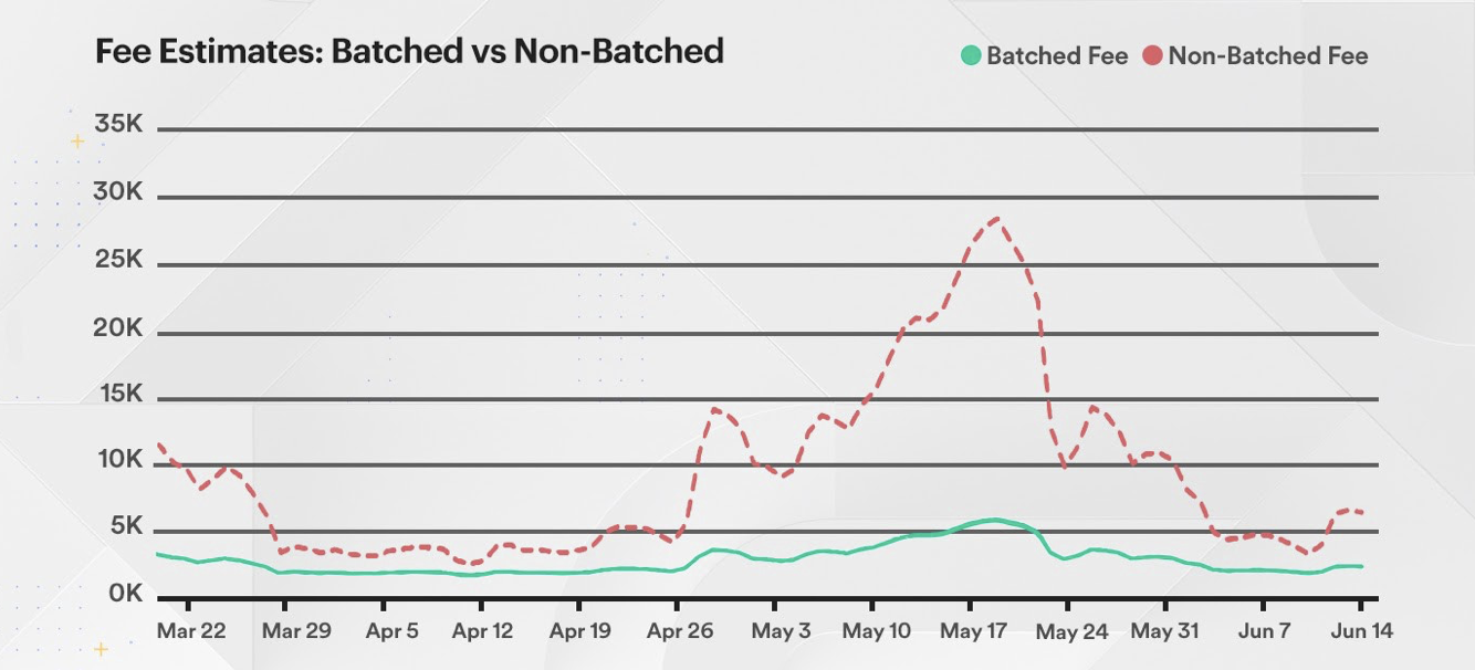 Since March, however, its new program has used the batching system to lump a host of transactions into a single on-chain event (approximately one per minute), reducing fees and processing time for the exchange.
