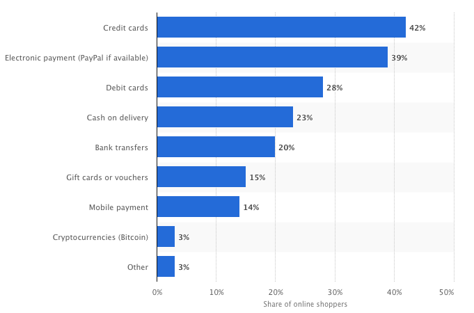 One way that payment firms could help to accelerate cryptocurrency adoption is through merchant services. PayPal already has a significant stake in this business, enabling anyone to accept payments via PayPal on their website and capturing significant market share.