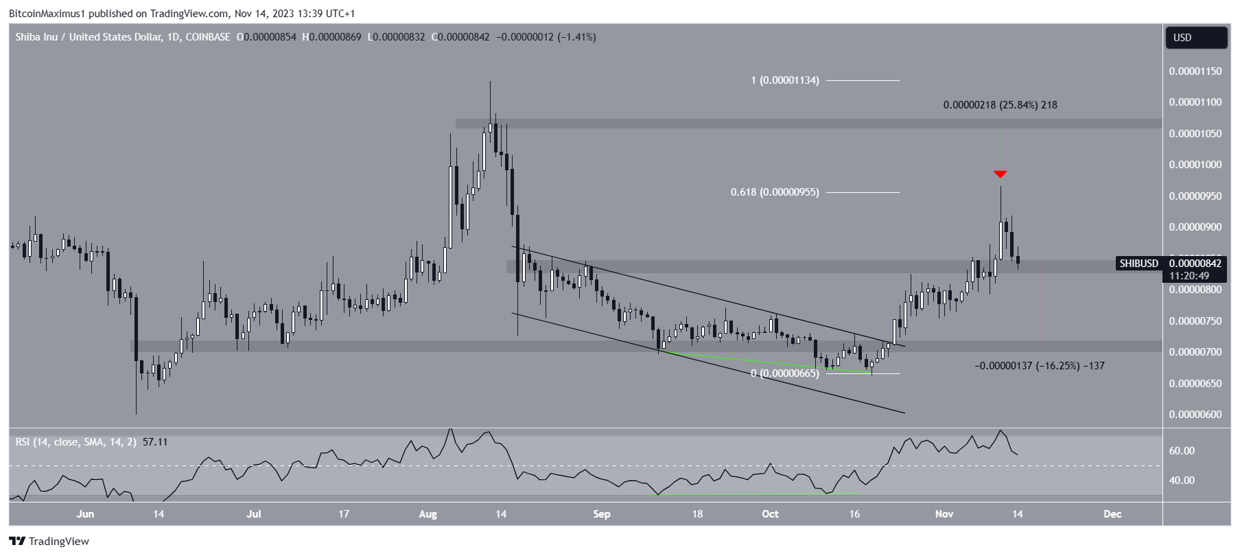 The resistance trend line of a long-term pattern rejected the Shiba Inu (SHIB) price last week.