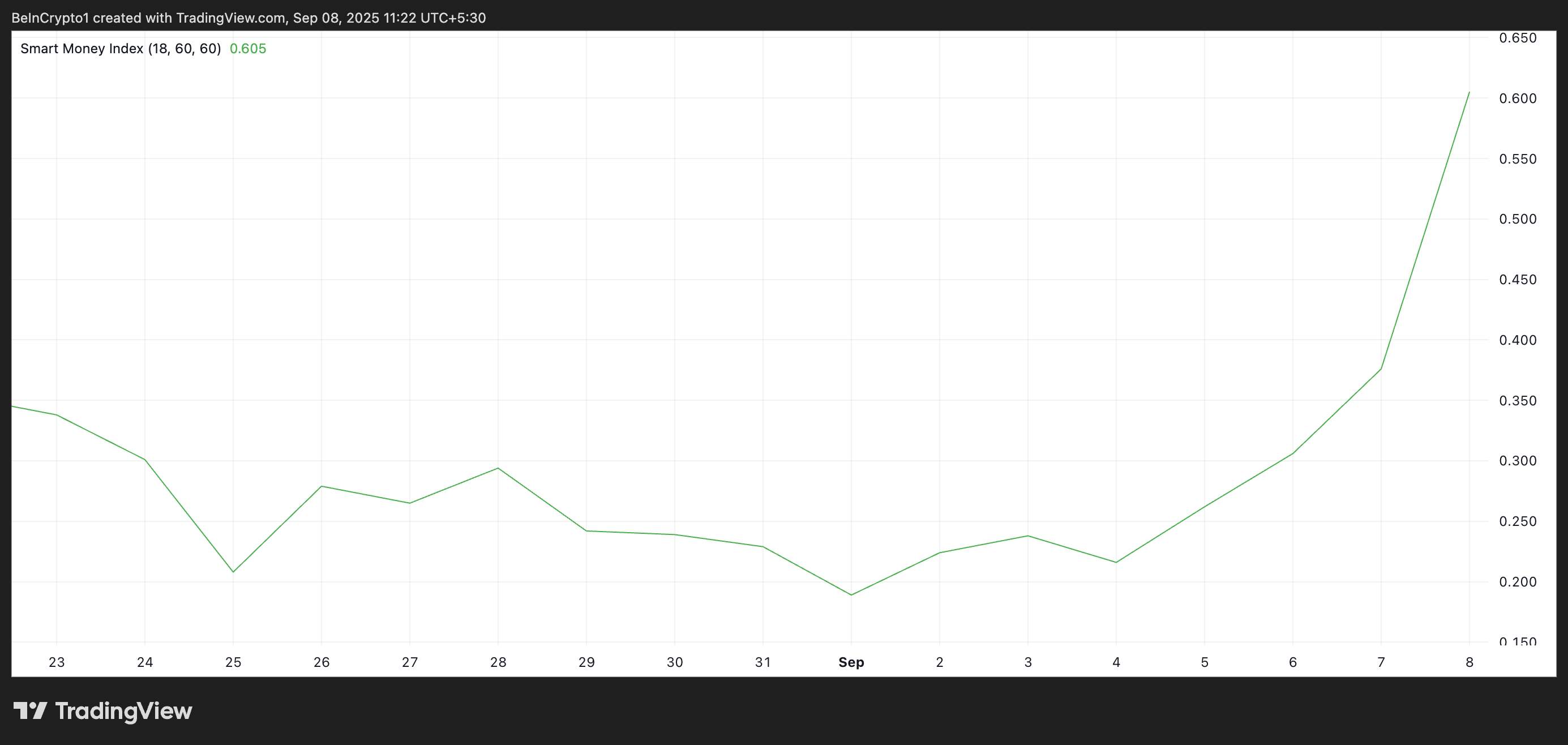 The SMI indicator refers to capital controlled by institutional investors or experienced traders who understand market trends and timing more deeply. It tracks the behavior of these investors by analyzing intraday price movements. Specifically, it measures selling in the morning (when retail traders dominate) versus buying in the afternoon (when institutions are more active).