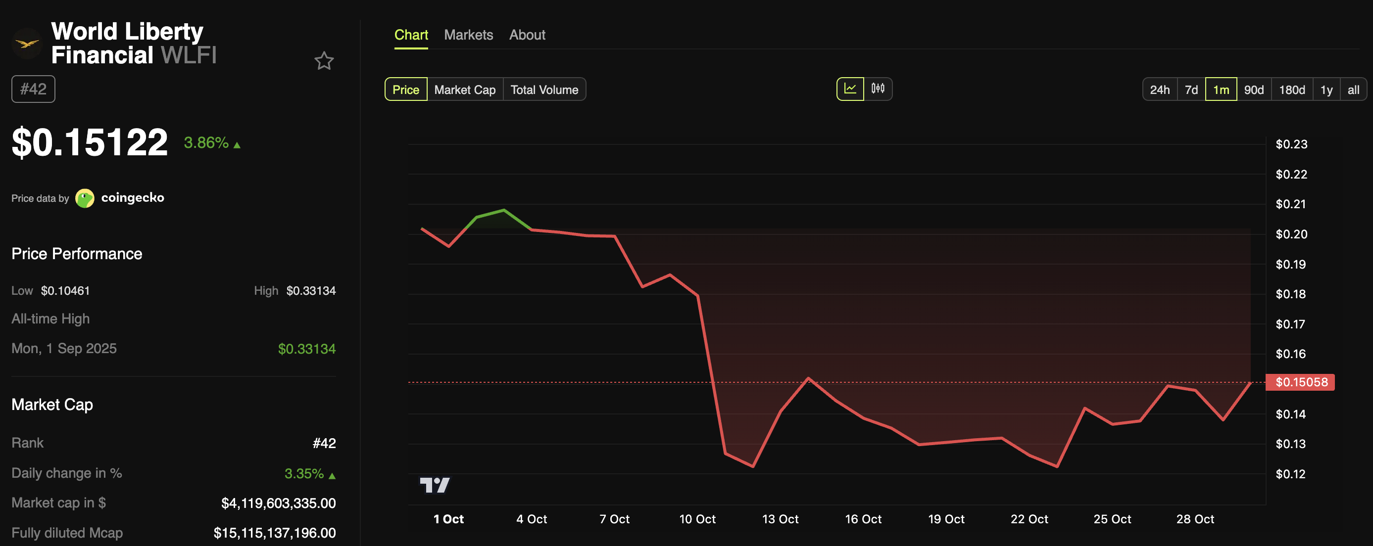 However, the recent uptick remains minor compared to the WLFI’s broader downtrend. Despite debuting on major exchanges, the token has faced market challenges.