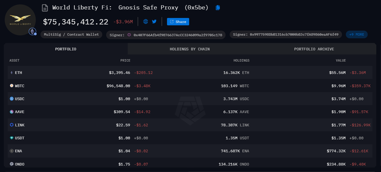 According to Arkham data, the project has been actively purchasing various assets, including ETH, WBTC, AAVE, LINK, ENA, and ONDO. These tokens have faced losses in recent days, coinciding with broader market volatility caused by Federal Reserve rate cuts and inflation forecasts.