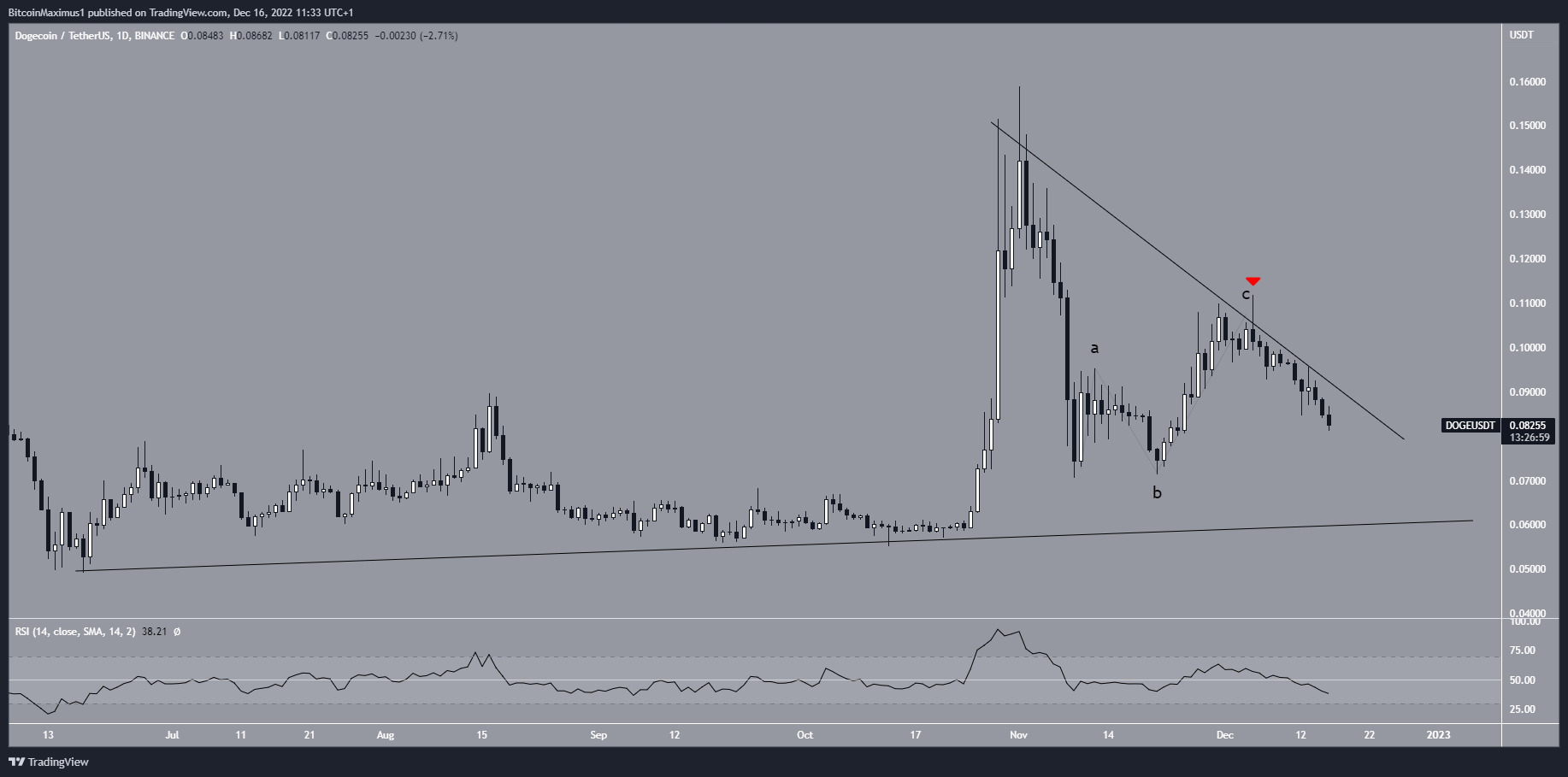 Dogecoin is Elon Musk’s favorite cryptocurrency and one of the two best-known meme coins alongside Shiba Inu. The altcoins price has fallen below a descending resistance line since Nov. 1. More recently, the line caused a rejection on Dec. 5.