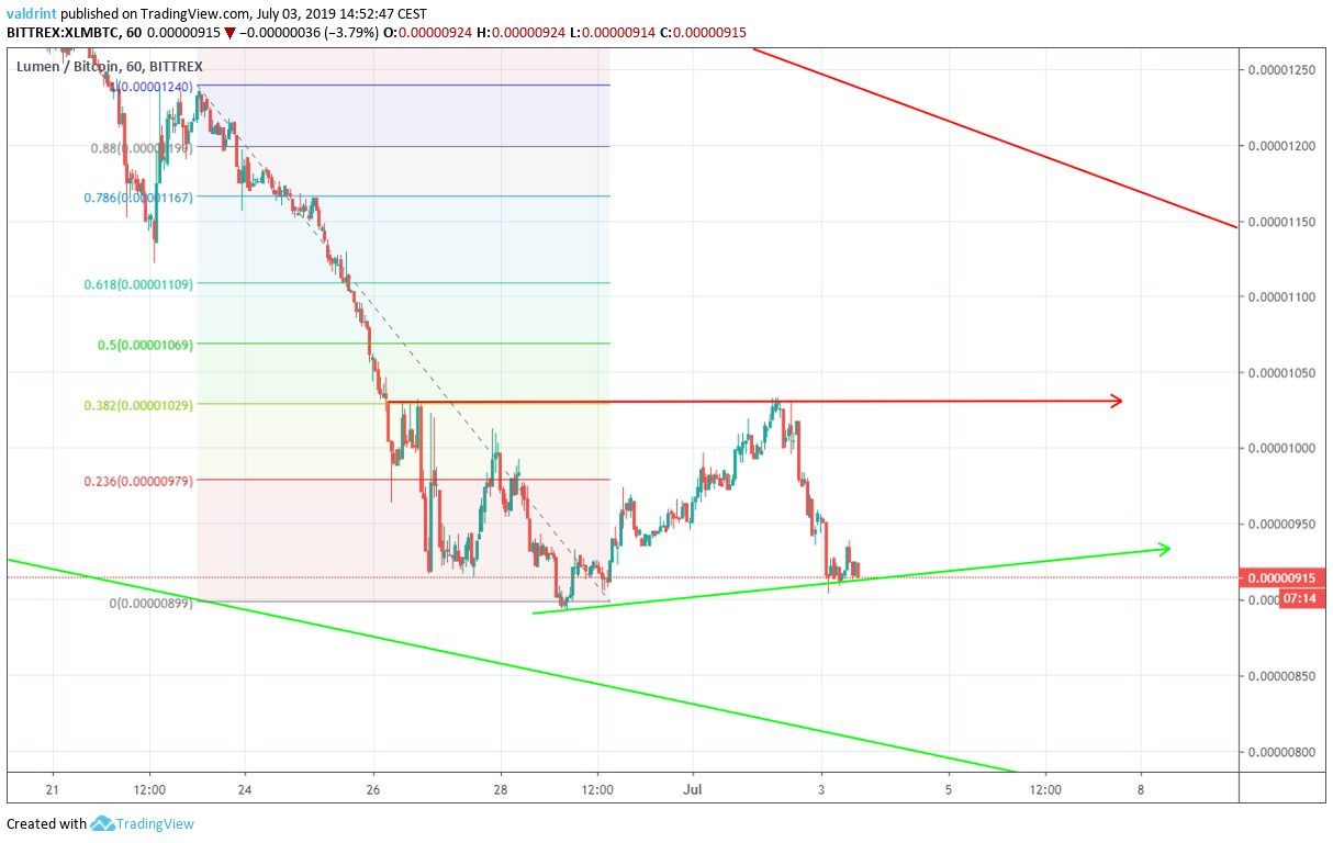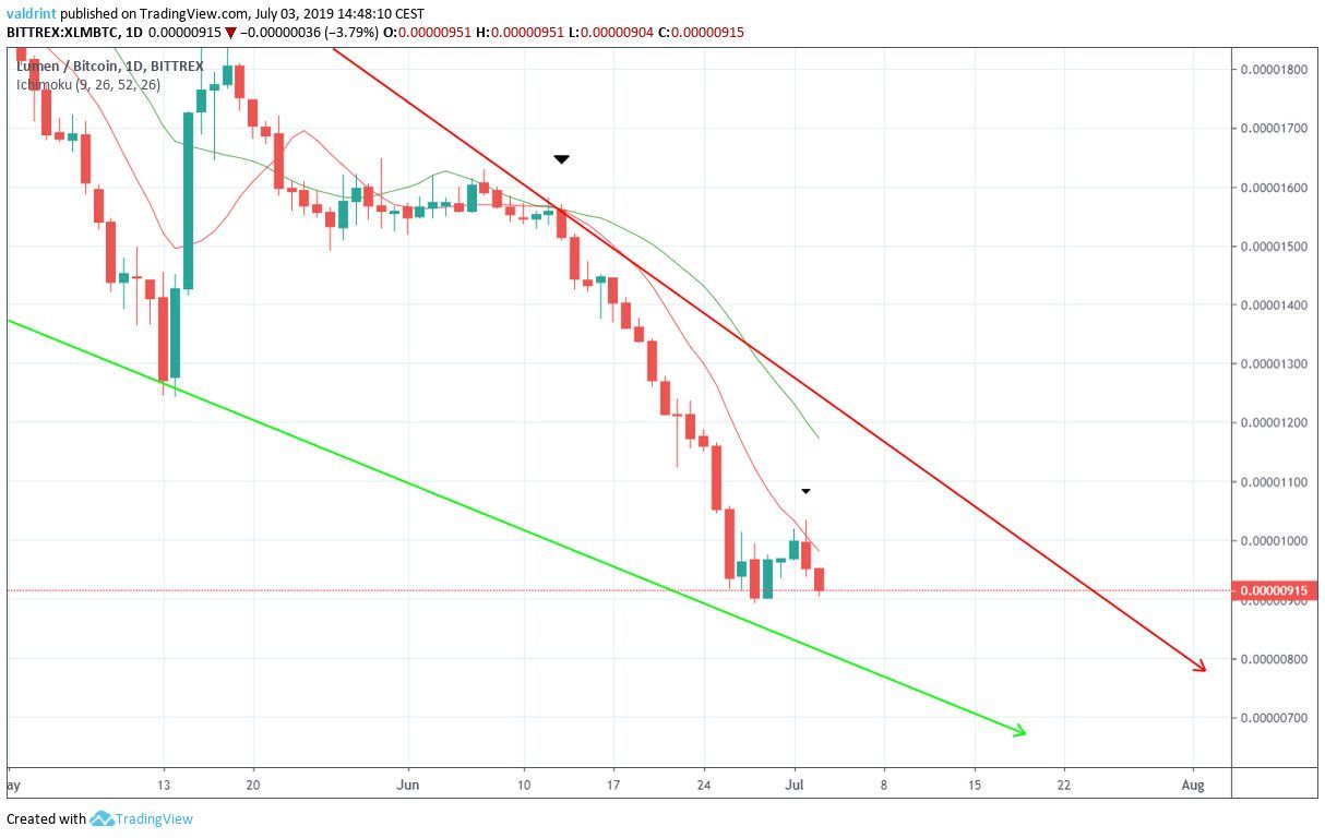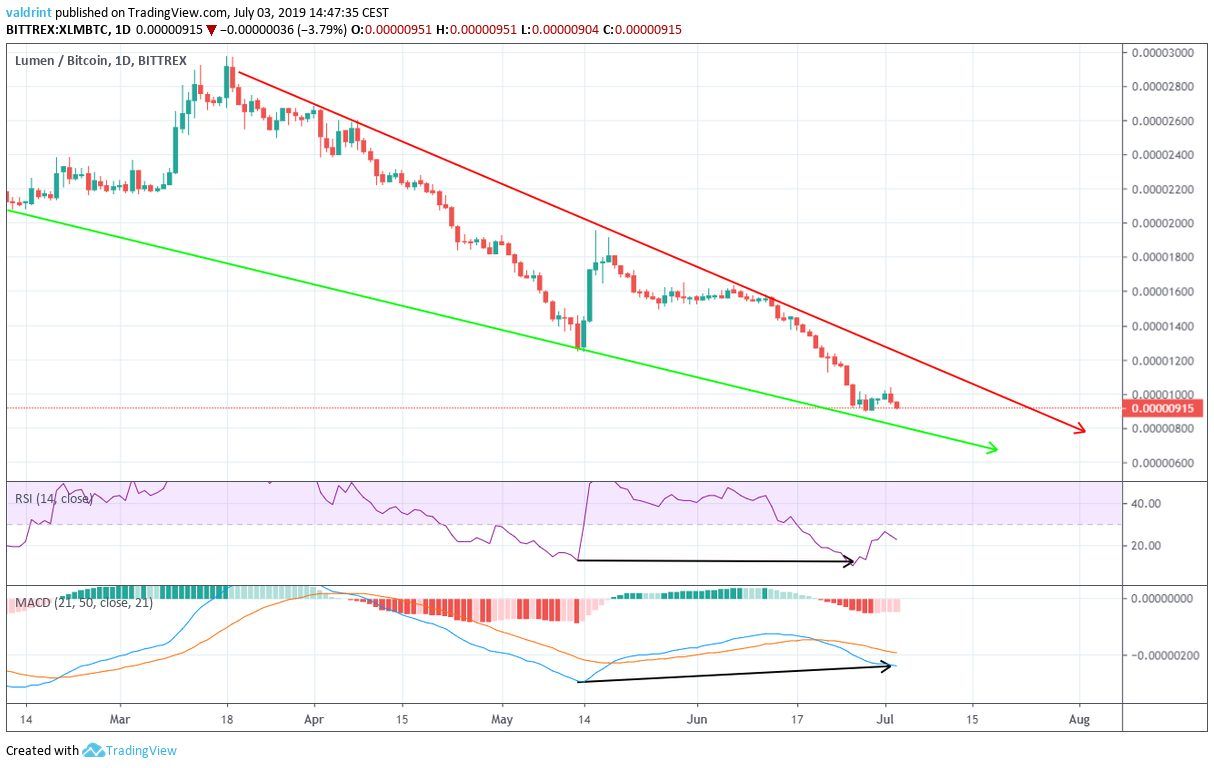 At the time of writing, the XLM price was trading very close to the support line, after several unsuccessful attempts at a breakout throughout the end of May and beginning of June.