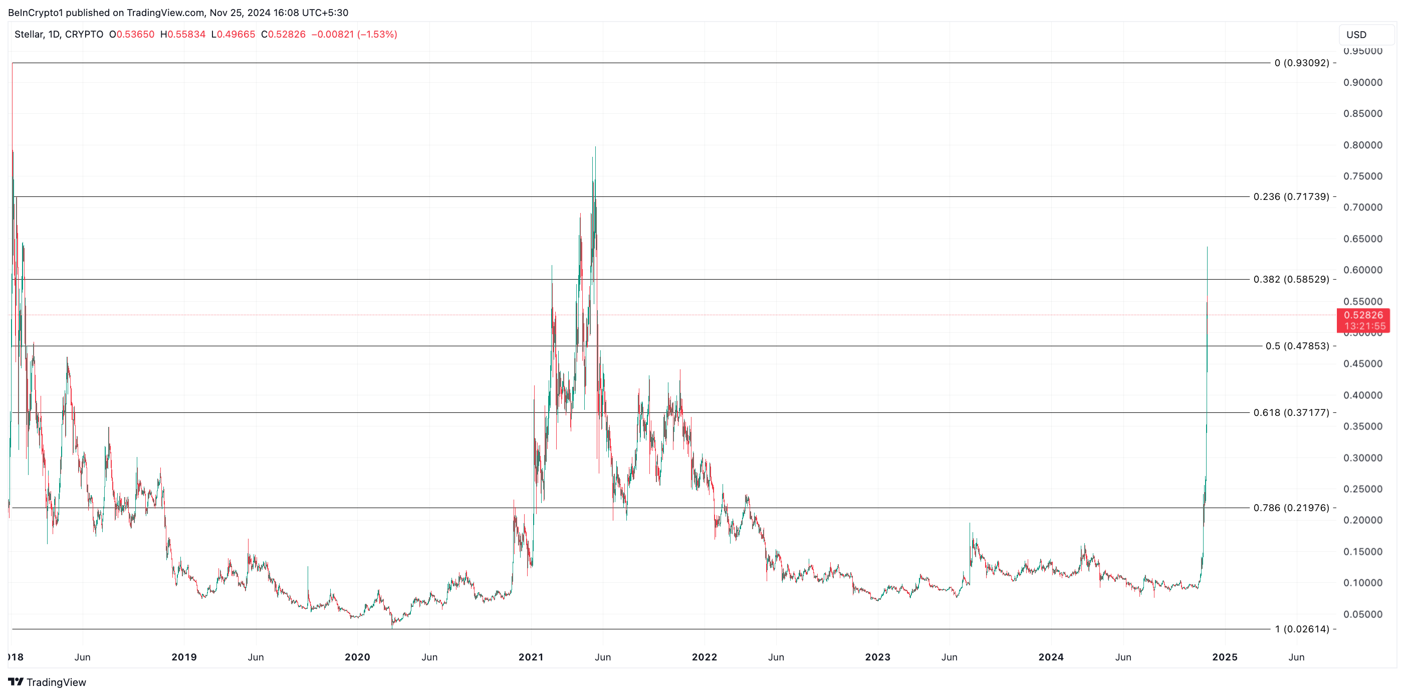 XLM is currently trading just below a key resistance level at $0.58. Breaking through this critical price point could pave the way for a surge to $0.71. Sustained buying momentum at this level may position XLM to reclaim its all-time high of $0.91.