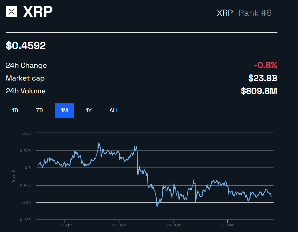 While the Court has yet to issue a judgment on the legal tussle between the SEC and Ripple, XRP has been soldiering. The cryptocurrency has experienced a mild sell-off over the last seven days, down 4.2% to $0.4592, according to BeInCrypto data. However, it increased by more than 24% in the previous 60 days.