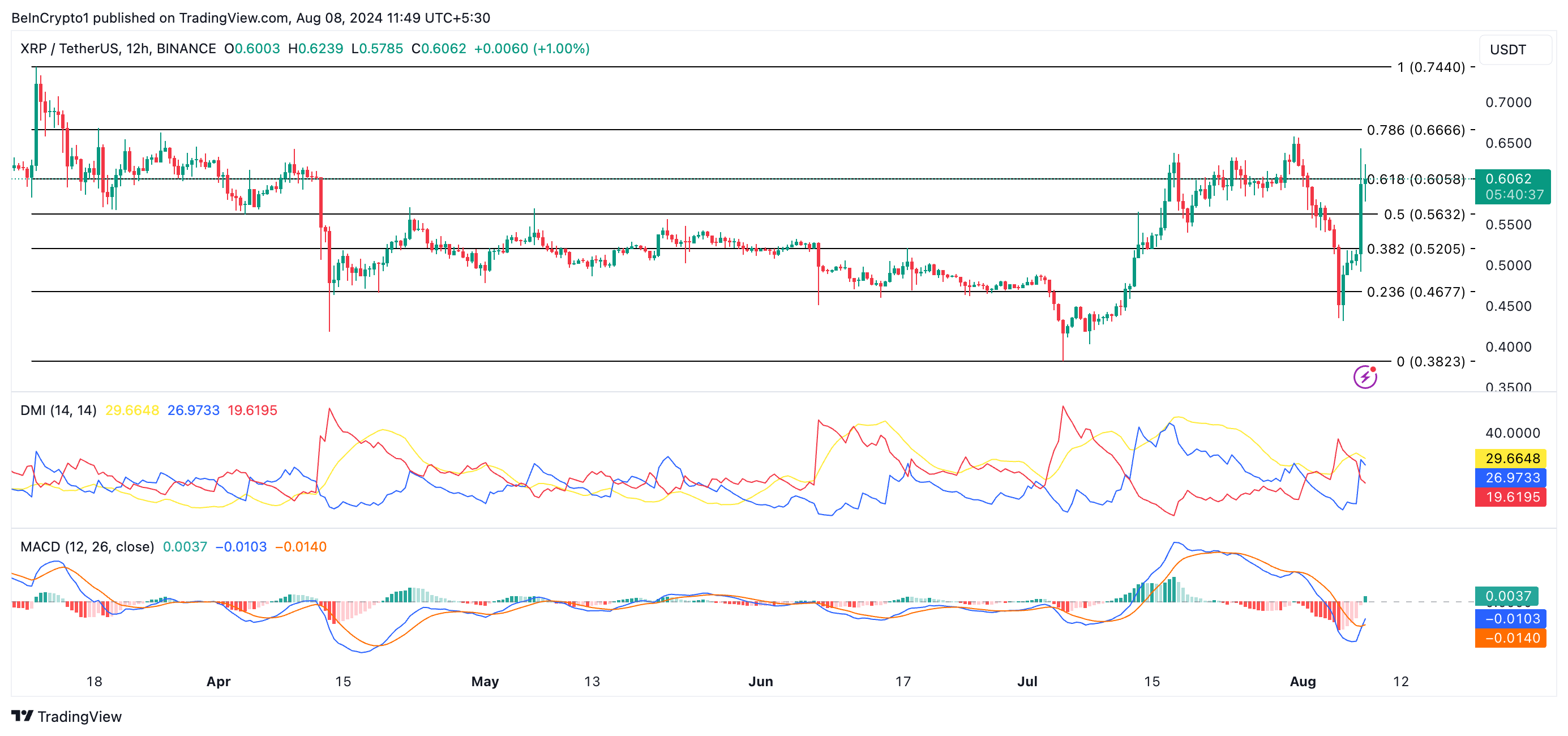 At press time, the seventh cryptocurrency asset by market capitalization trades at $0.60. A surge in daily trading volume has accompanied its price rally. Over the past 24 hours, XRP’s trading volume has surpassed $5 billion, marking a 202% increase.