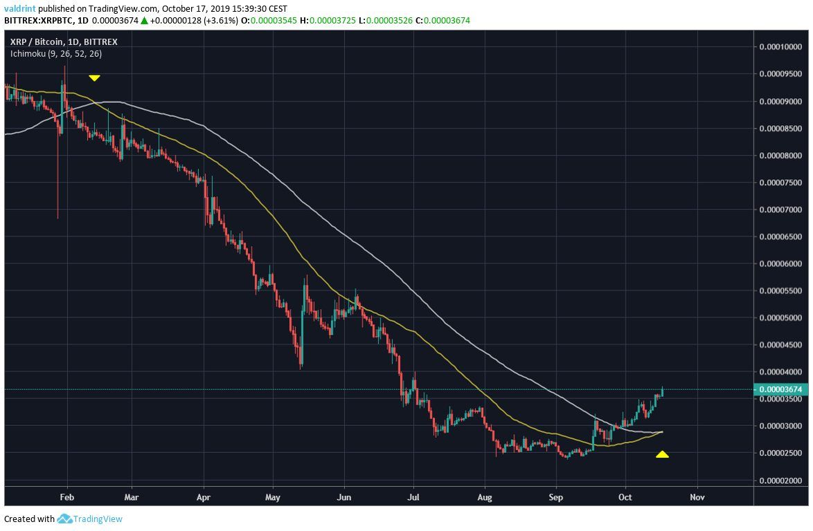 The XRP price recently broke out above a significant resistance area. While it has been on a strong upward trend, we still do not have confirmation that the current trend will continue. A movement above 4000 satoshis with strong volume would likely confirm that it has.