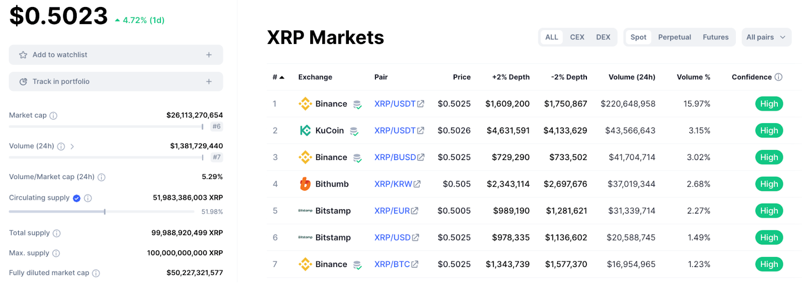 Data from CoinMarketCap reveals that Ripple is now the seventh most-traded crypto over the past 24 hours, with more than $1.3 billion worth of $XRP exchanging hands.