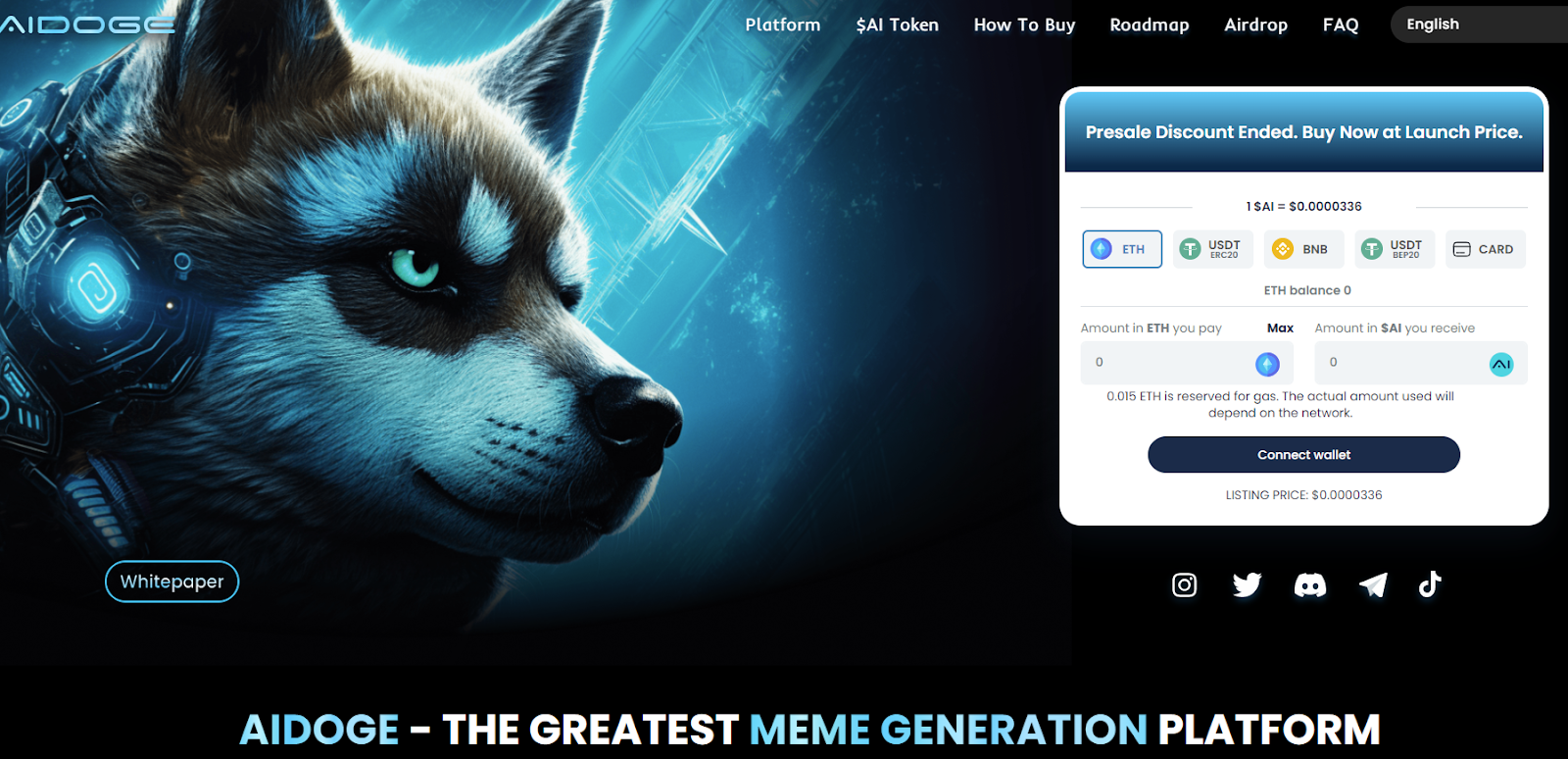 While the AiDoge presale is now over, traders still have the oppoorunity to buy now at the listing price of $0.0000336.
