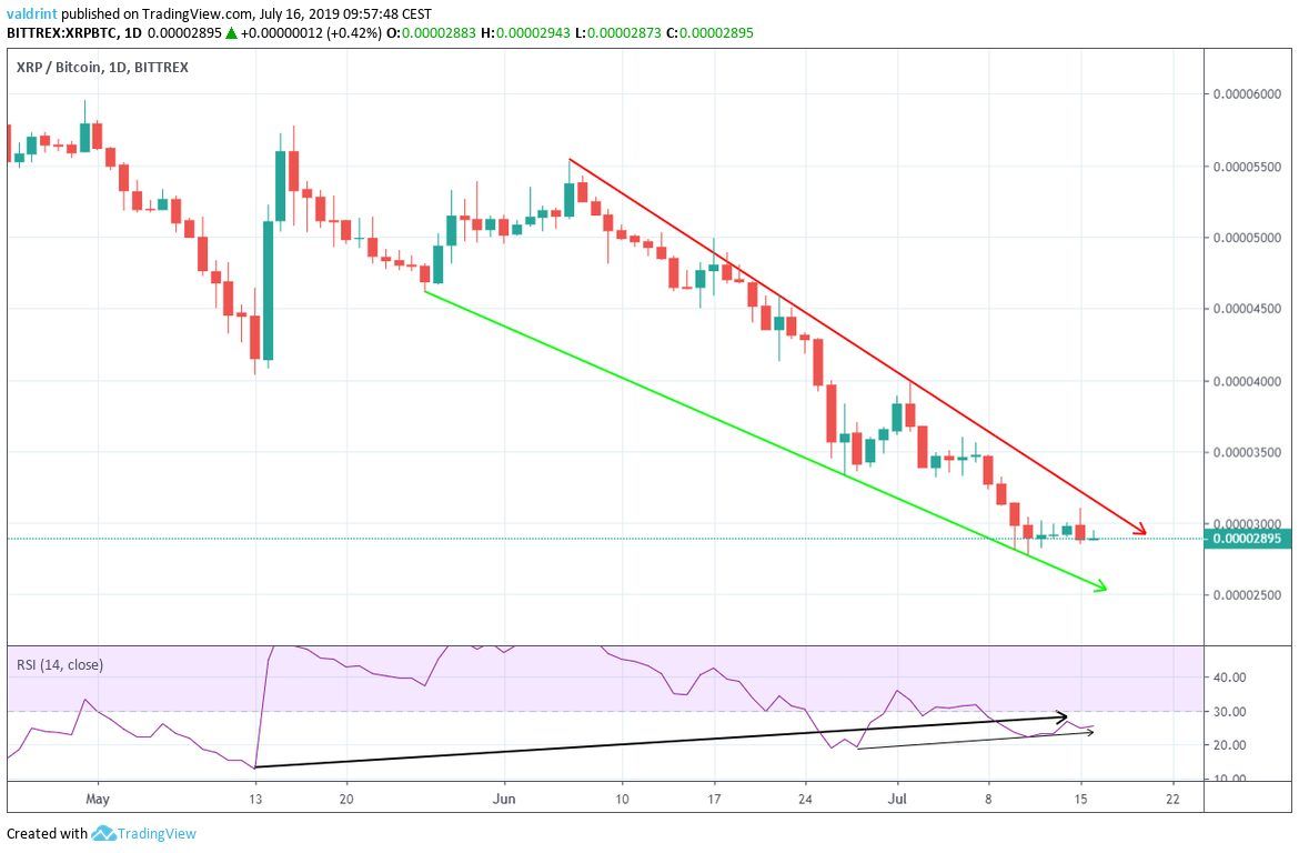 On July 11 and 16, XRP reached lows of 2850 satoshis.