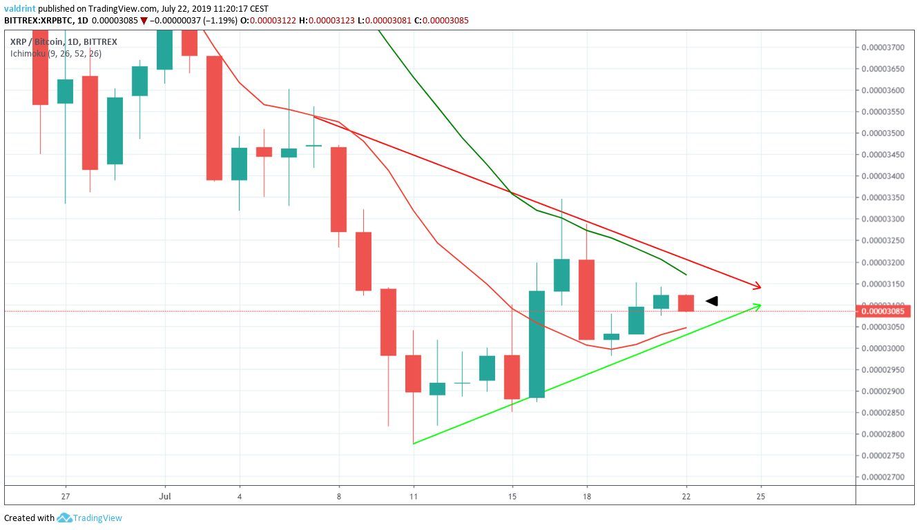 According to our analysis, XRP will soon break out from this triangle and reach the resistance area outlined above.