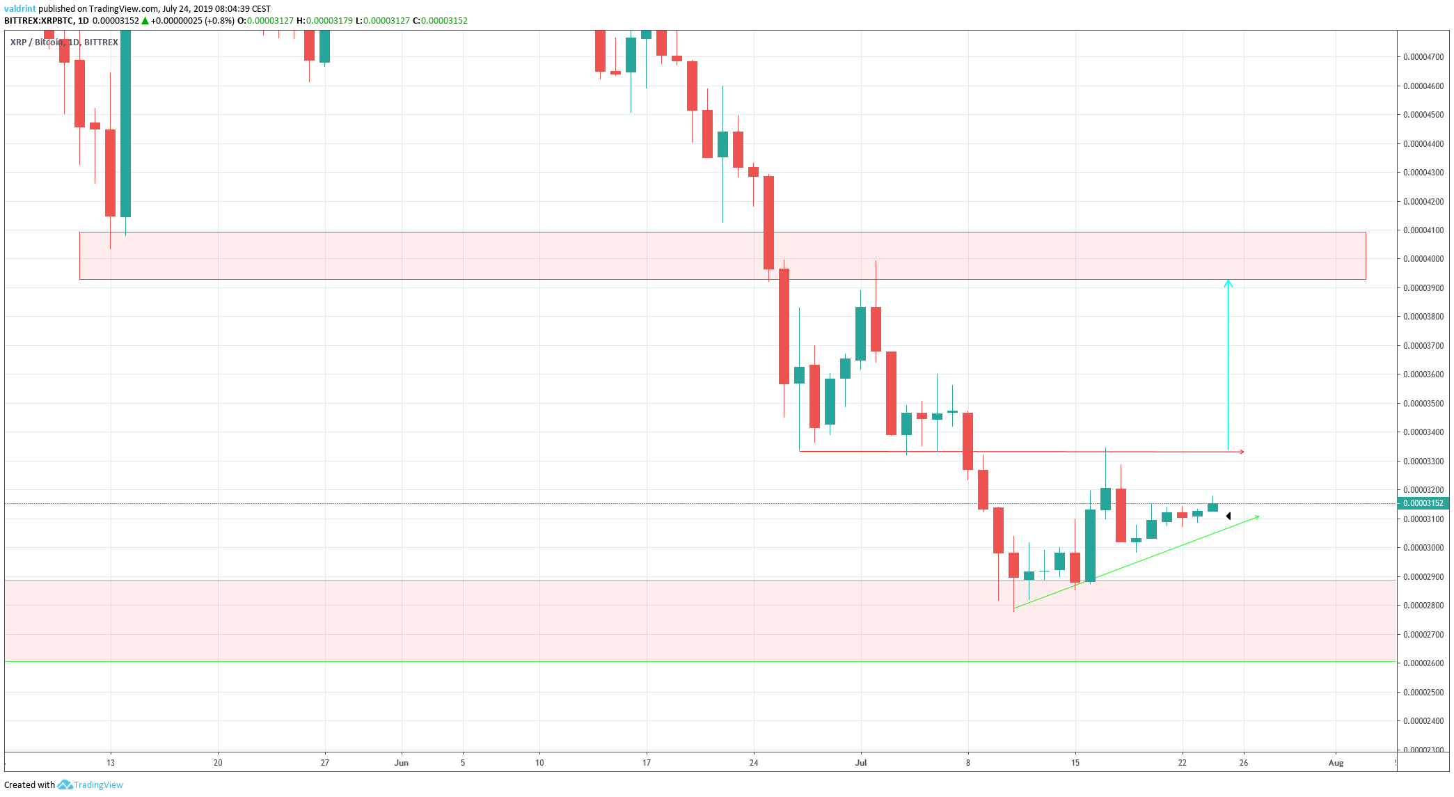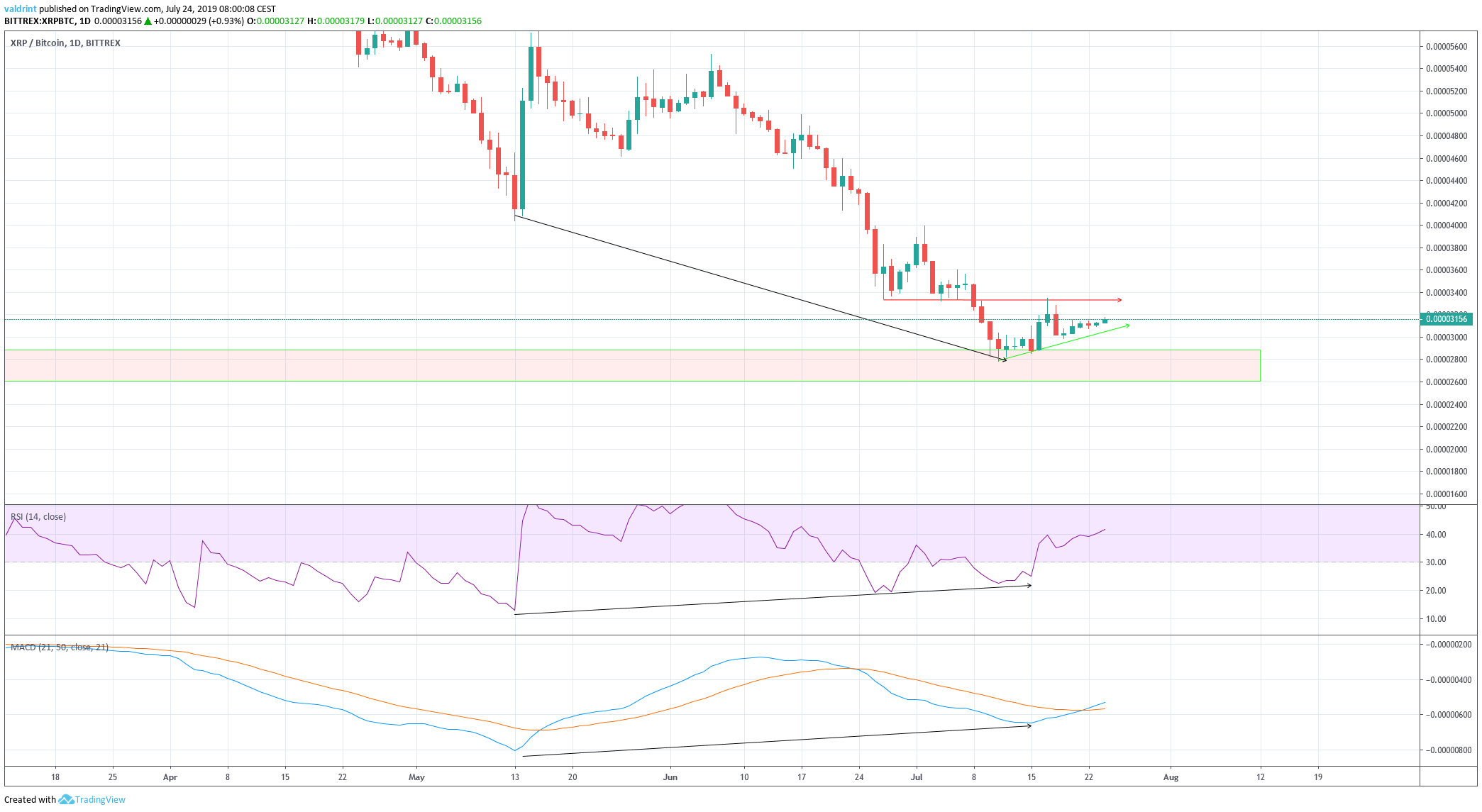 - XRP/BTC is possibly trading inside an ascending triangle.