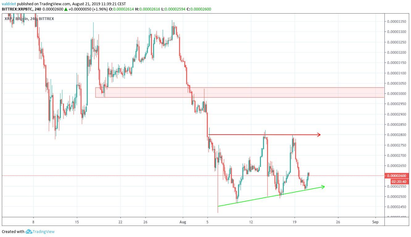 - XRP/BTC is trading inside an ascending triangle.