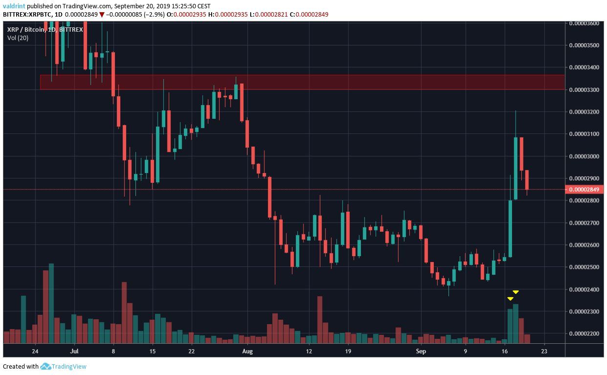 For hypothetical trading purposes, we consider XRP a buy near 2800 satoshis.