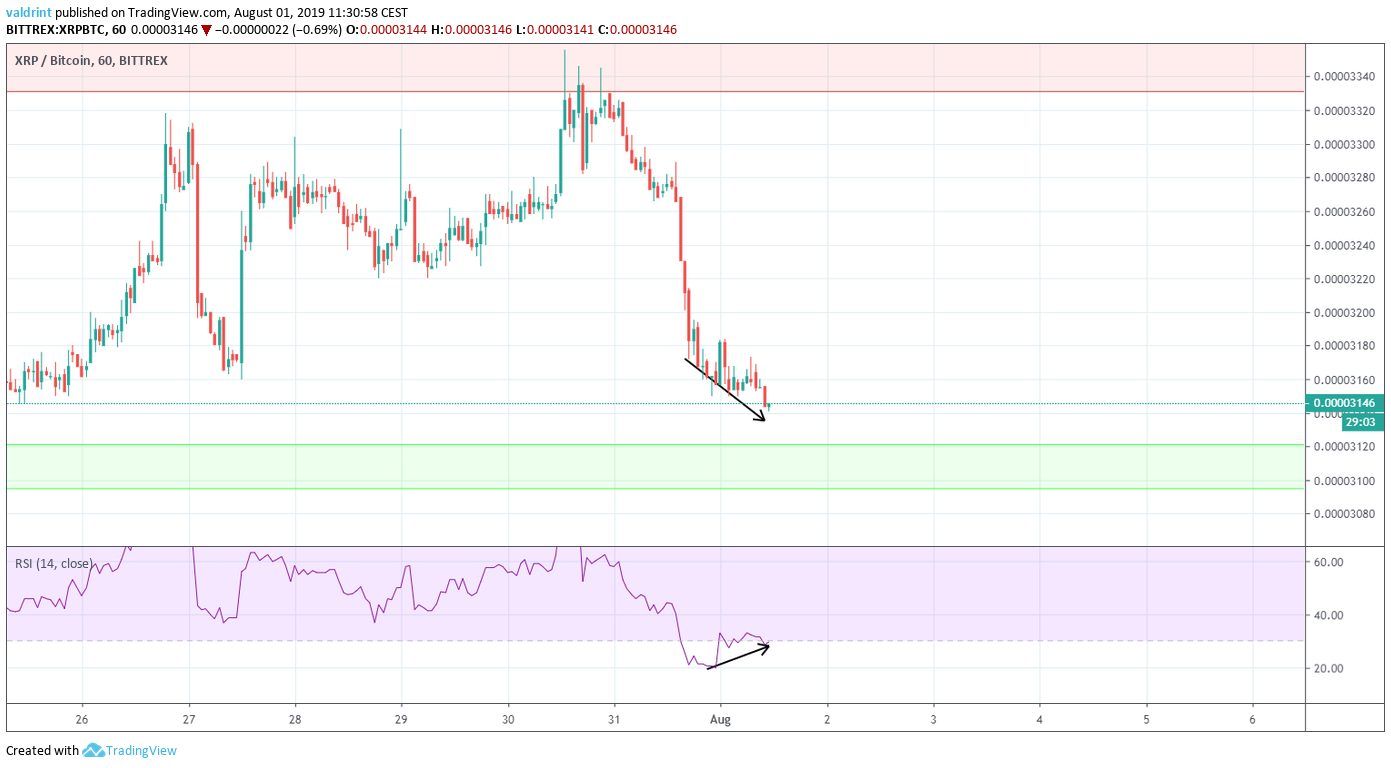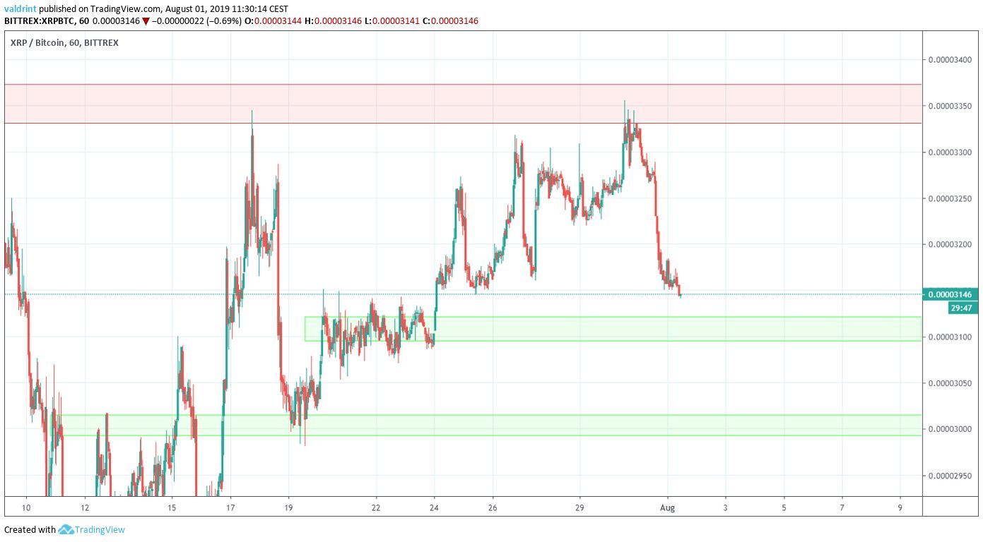 On July 11, 2019, the XRP price reached a low of 2777 satoshis. An upward move ensued. On July 18, it reached a high of 3345 satoshis. After a slight decrease, it reached similar levels on July 30. It has been decreasing since.