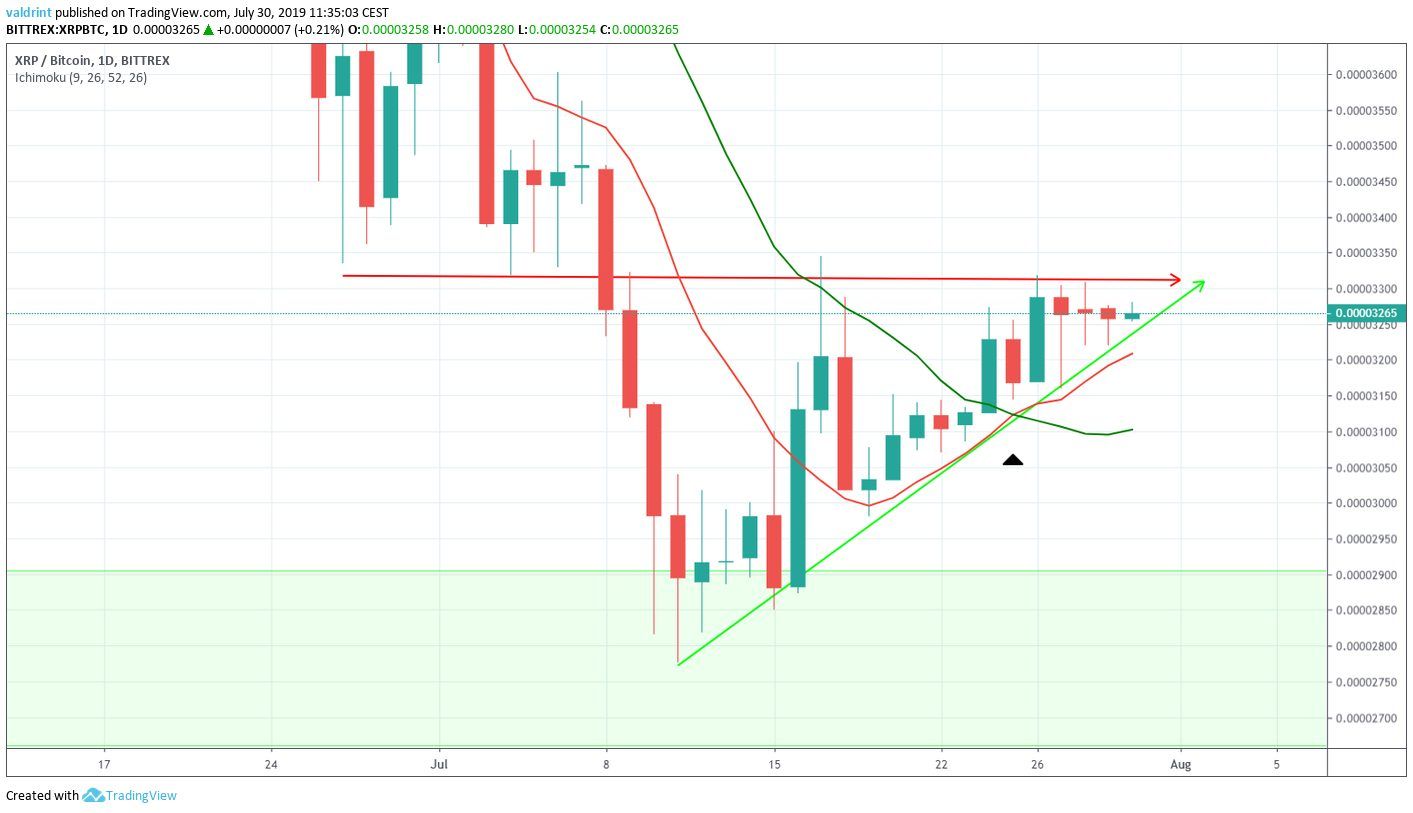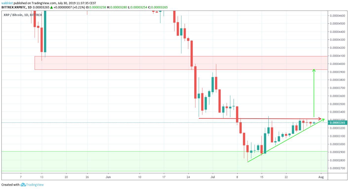 At the time of writing, the Ripple price was trading near 3300 satoshis.