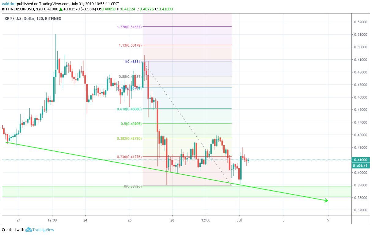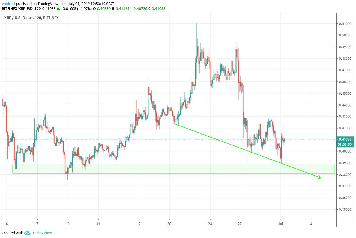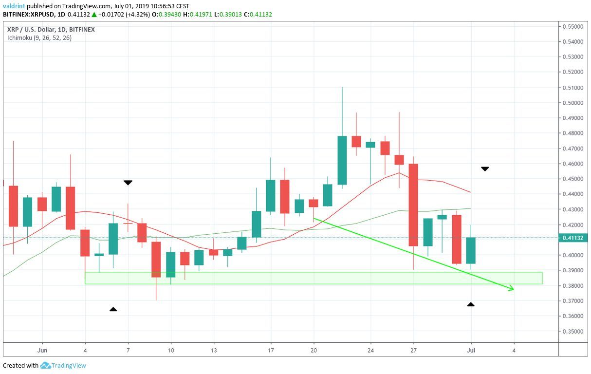 The XRP price reached the first level twice on June 29 and 30, before decreasing. It is currently in the process of beginning another upward move, which should take it to at least $0.44.