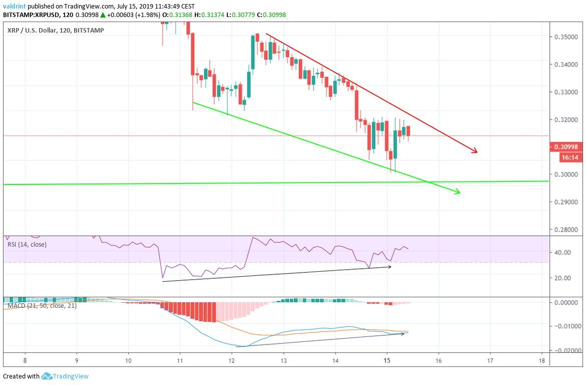 On June 26, 2019, the XRP price reached a high of $0.49. A decrease ensued, which intensified on July 10. The price has been decreasing since, without showing signs that it will begin a reversal.