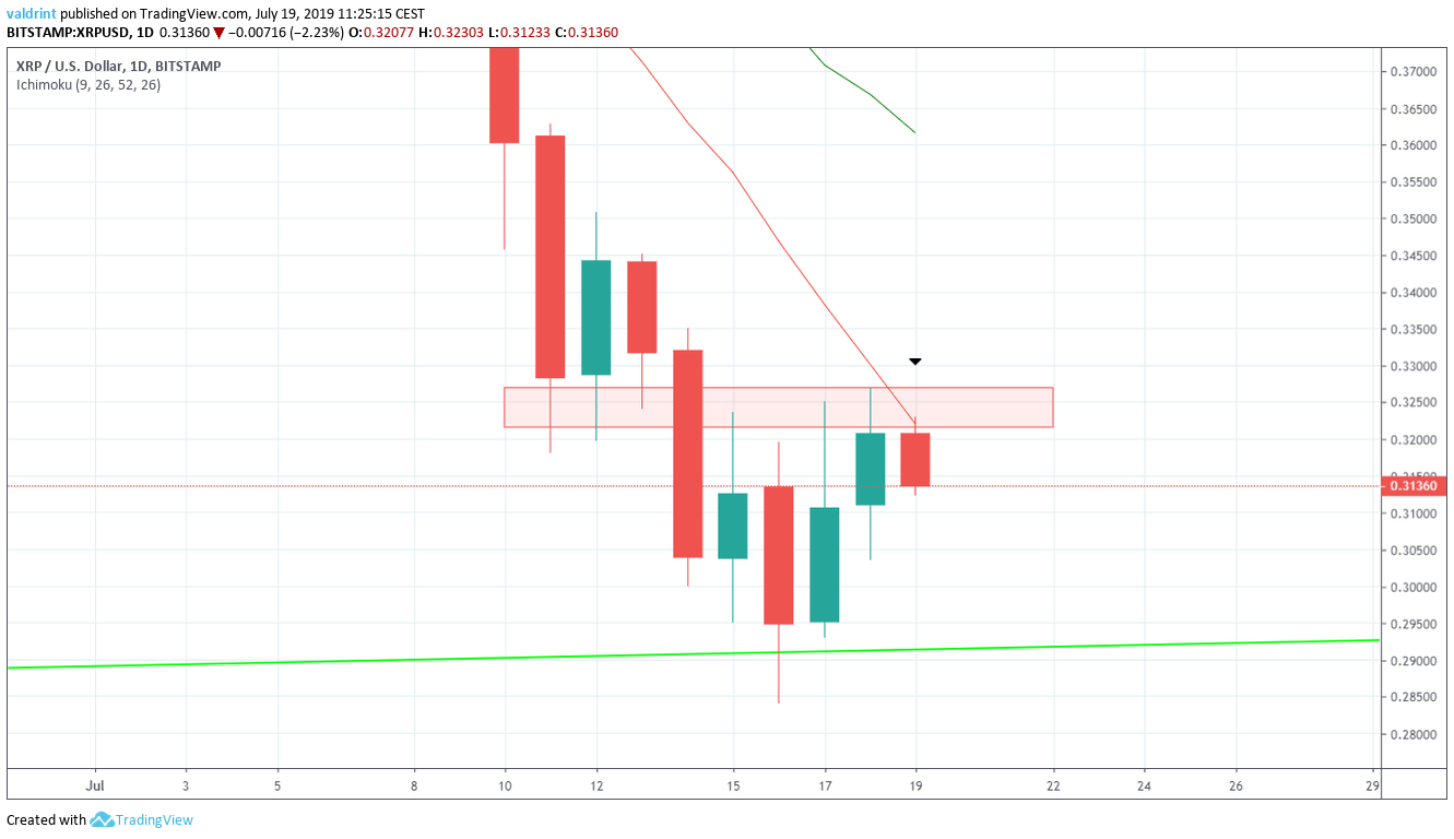 Furthermore, the 10-day MA coincides with a significant resistance area which is found near $0.325.