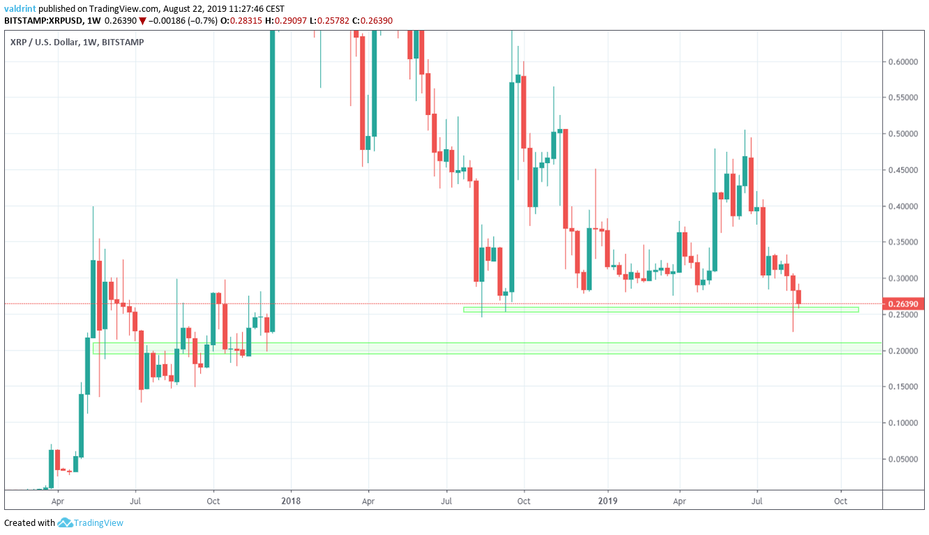 A look at the daily time-frame shows that XRP has not traded below the current support area since December of 2017.