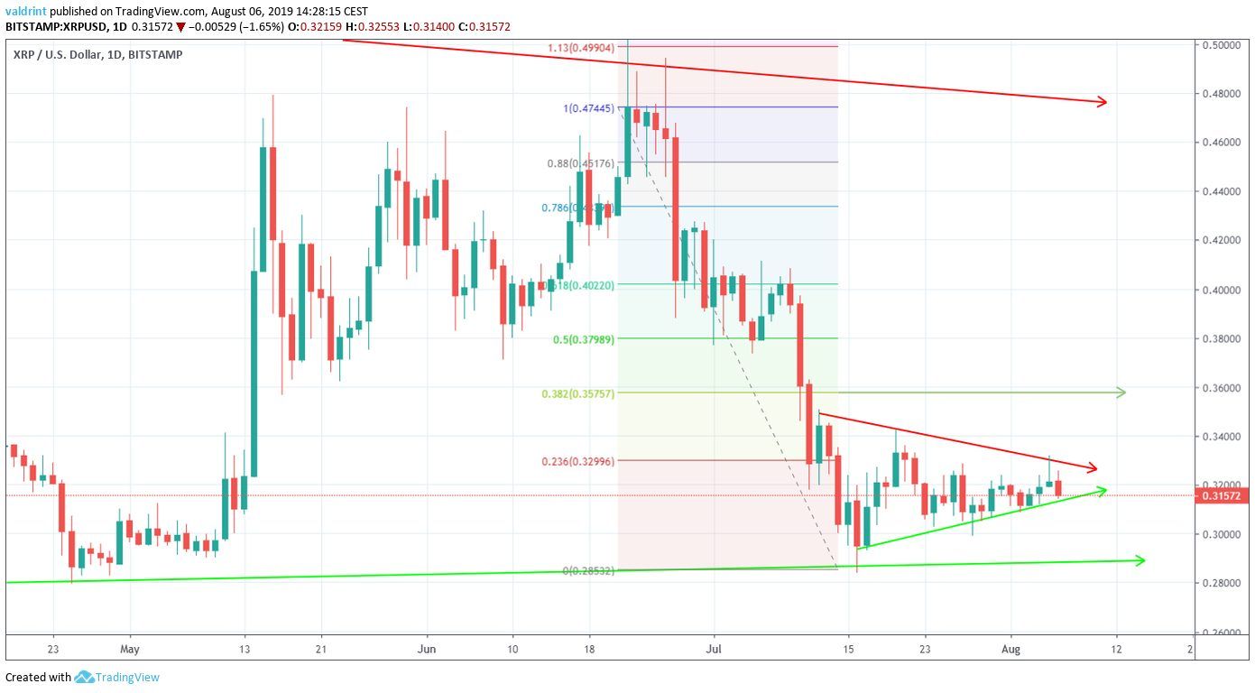 A look at the daily time-frame shows that the XRP price began its decrease at the end of June, at prices near $0.48