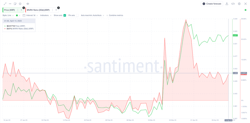 Considering the on-chain MVRV data provided by Santiment, XRP price could rise to $0.60 before facing significant resistance.