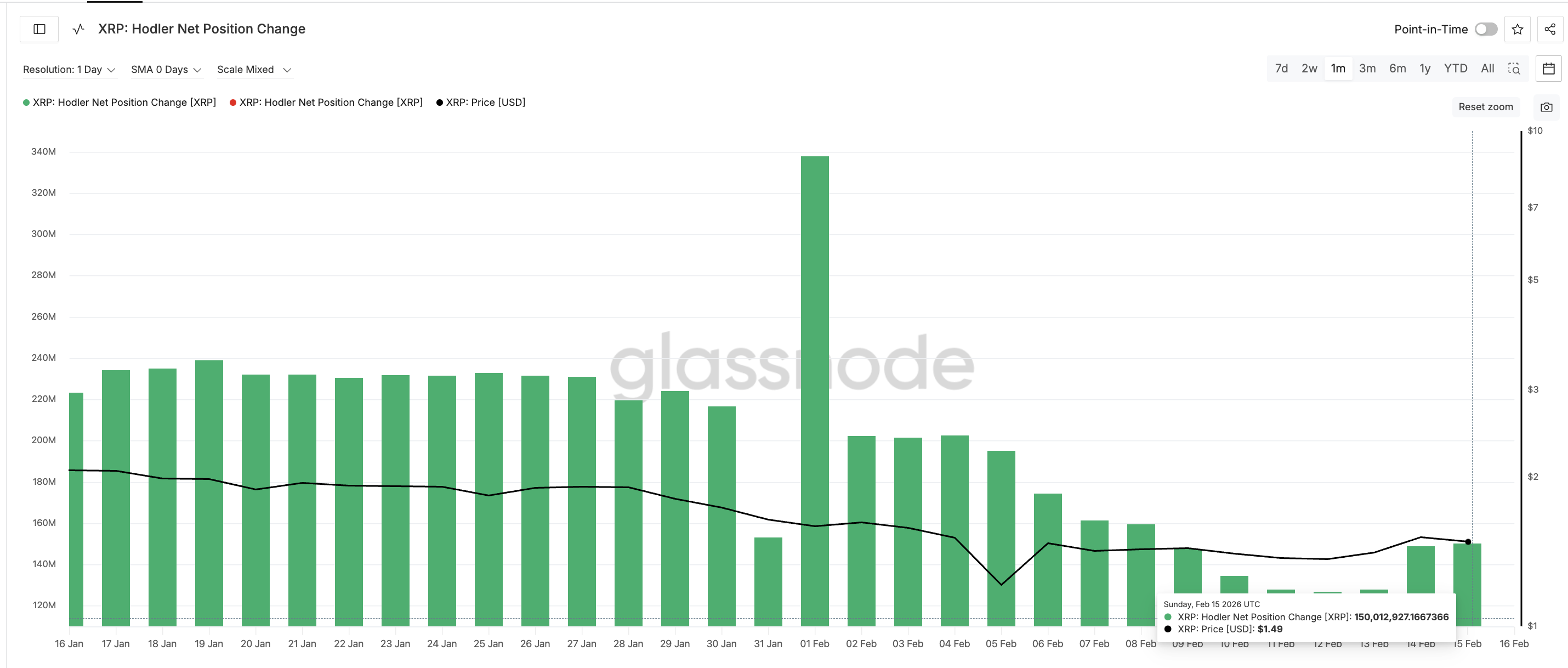 At the same time, long-term holders have started buying. The Hodler Net Position Change metric shows holders increased their positions from around 127 million XRP on February 13 to about 150 million XRP now, a 17% rise. This indicates some investors are attempting to absorb the whale supply and stabilize the market.