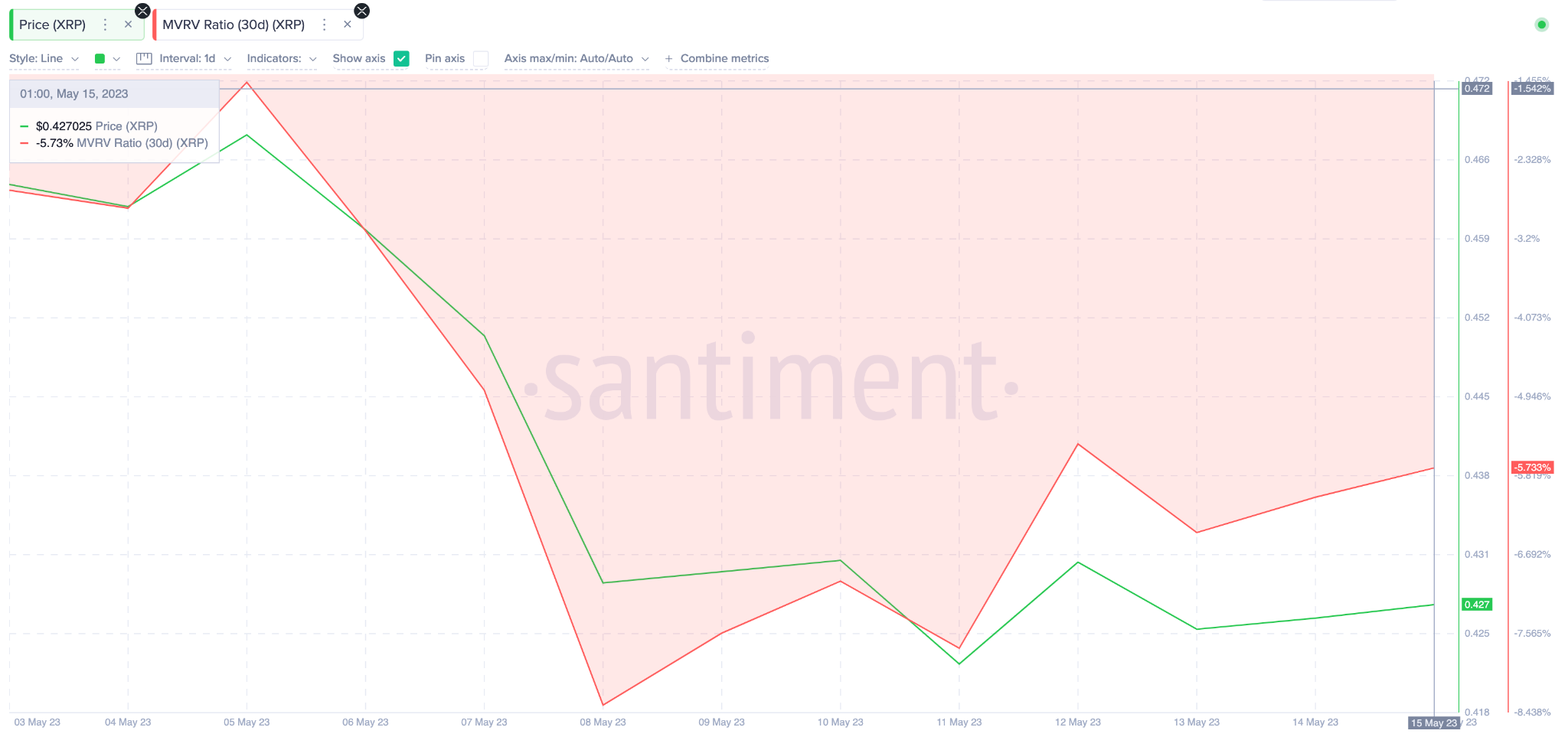 And according to Santiment’s Market-Value to Realized-Value (MVRV) data, most crypto investors that bought XRP within the past month are sitting on unrealized losses of about 6%.