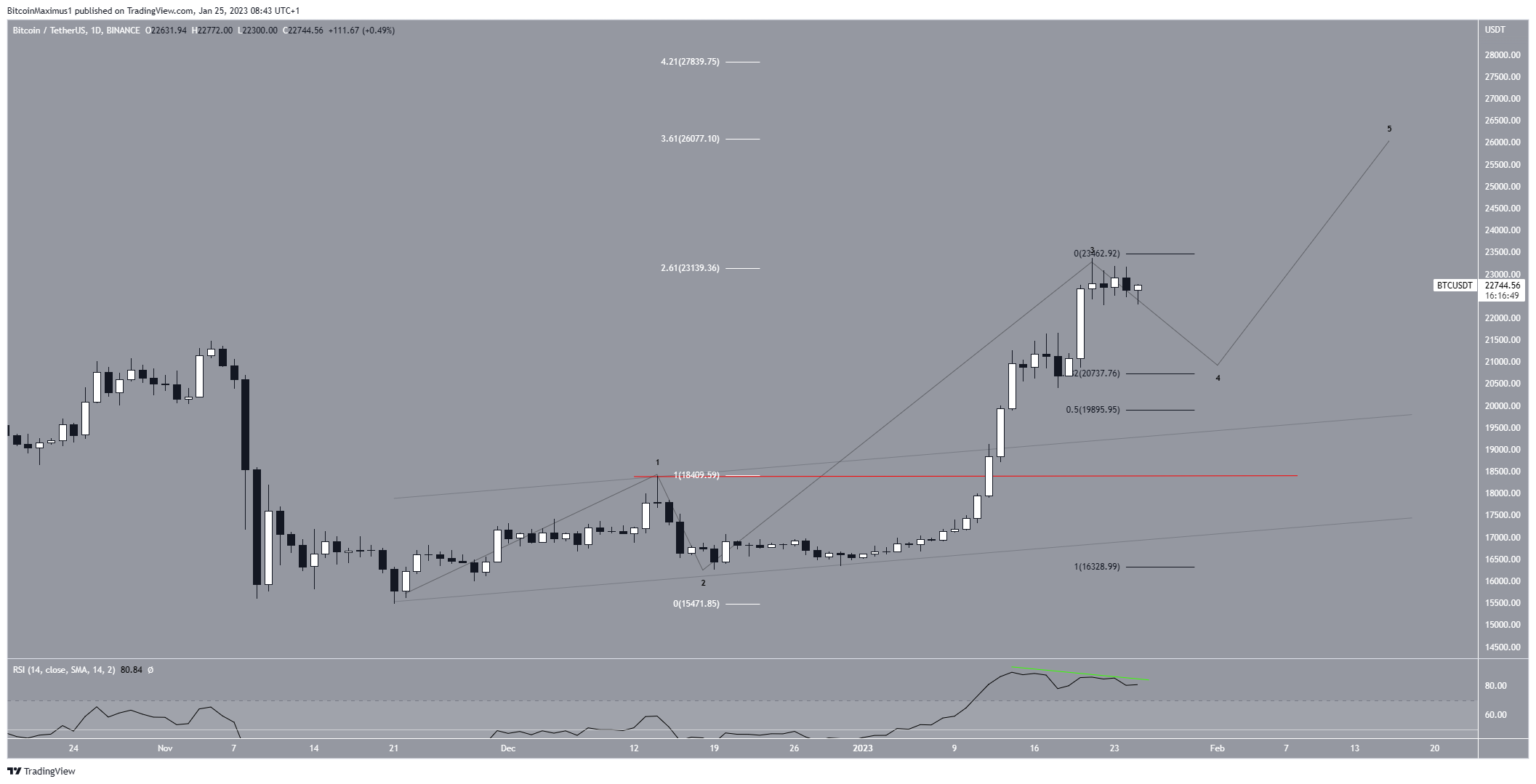 If the BTC price moves above its Jan. 21 high of $23,371, it would mean that the retracement is complete and a movement toward $26,077 will commence.