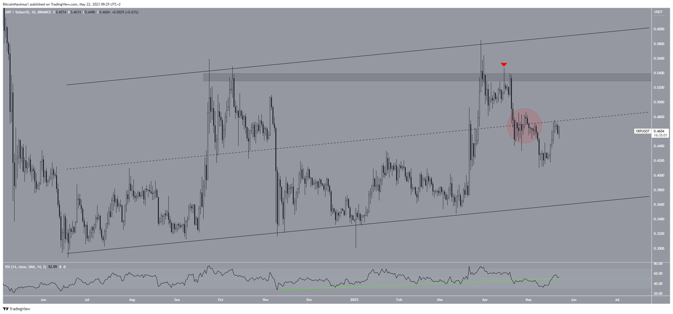 Since June 2022, the price of XRP has been trading within an ascending parallel channel. This pattern involves the price bouncing between the resistance and support lines numerous times before eventually breaking down.