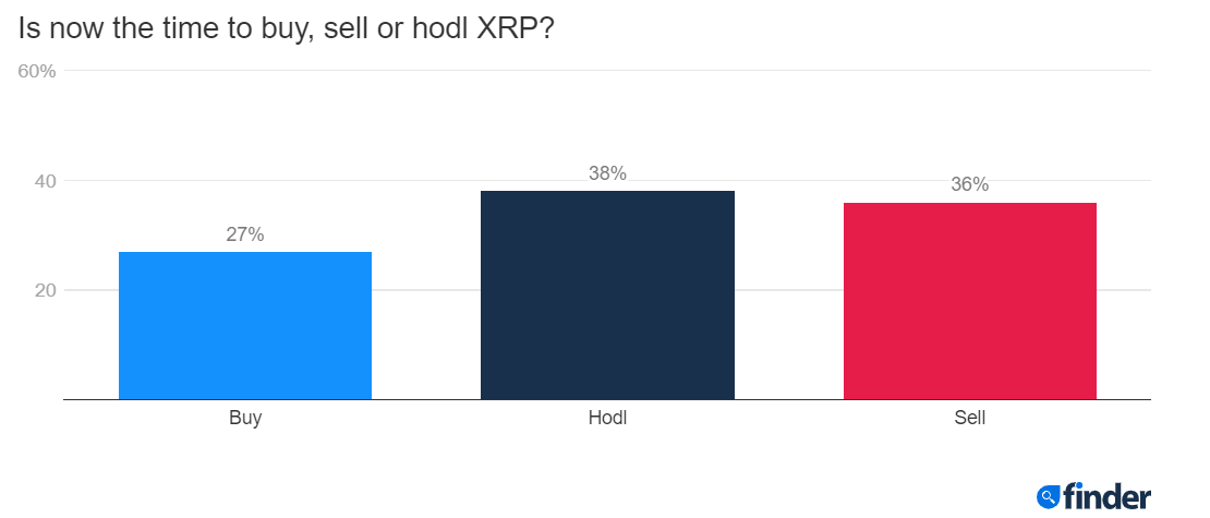 Only 27% of panelists say buy XRP. Another 38% say hold. 36% say sell.